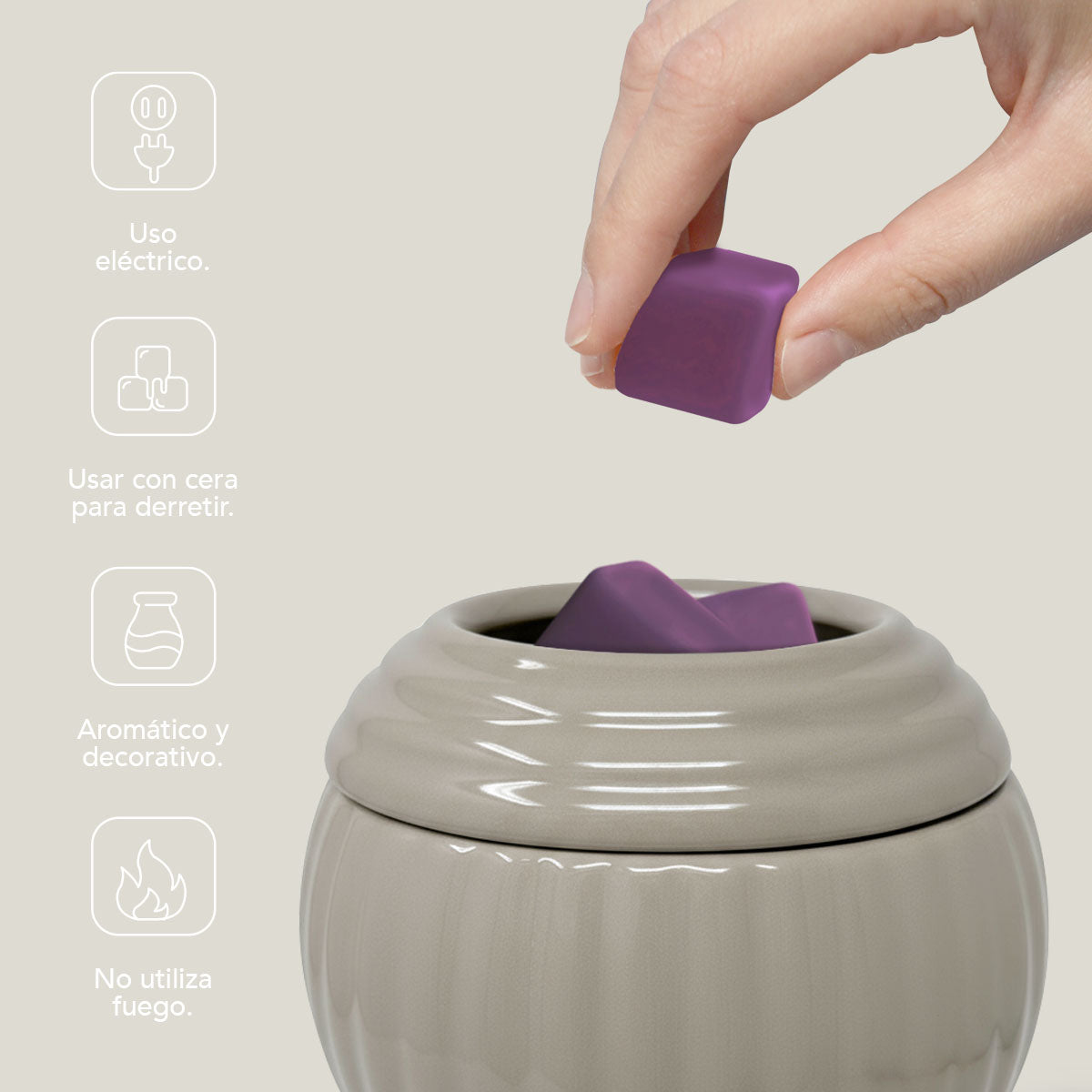 ¿Para qué sirve? Sirve para derretir cera aromática sin necesidad de una llama, liberando su fragancia de forma continua y segura en el ambiente.