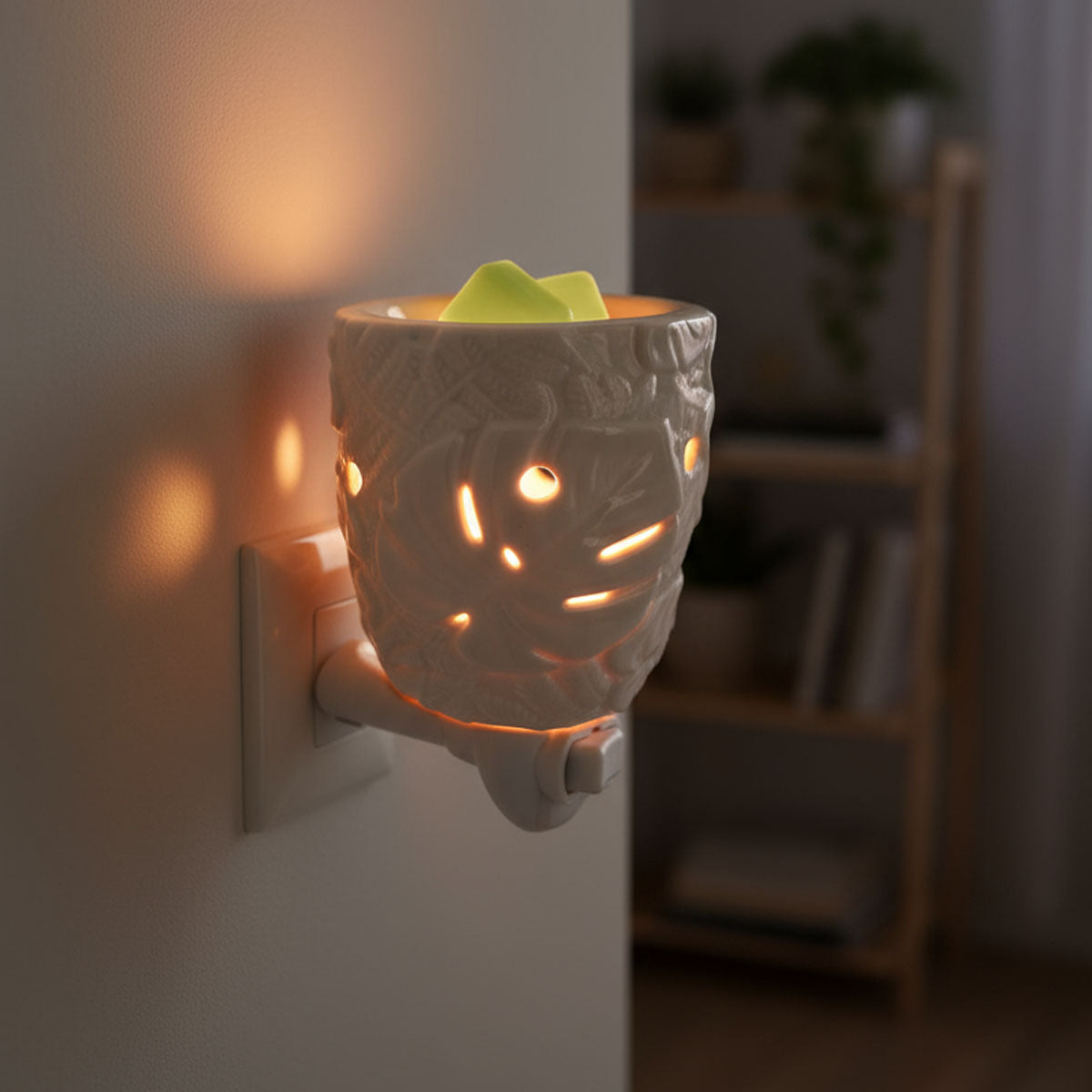- Tipo de Producto: Calentador eléctrico de Cera o " Wax Warmer" formato Plugin - Diseño Hojas. ColorBeige