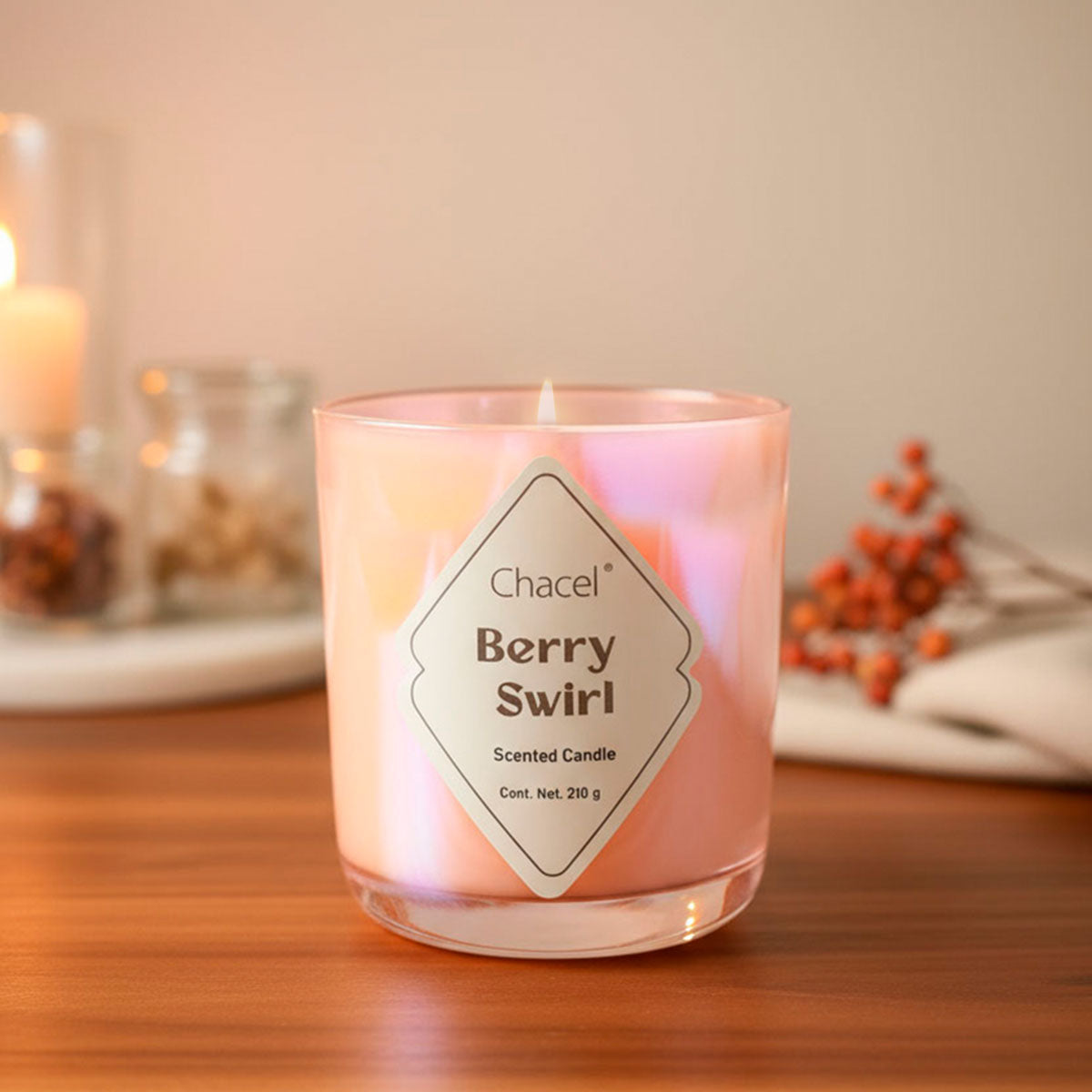 Características * Aroma: Remolino de bayas * Tipo de Producto: Vela Aromática Chica - Color rosa pastel tornasol * Dimensiones: 8 X 9 X 8 cm * Peso: 210 g * Duración: Hasta 42 horas de fragancia continua. * Pabilo de algodón de alta calidad, libre de plomo * Ingredientes: Mezcla de ceras naturales. Producto vegano, libre de humo y ollin. * Artesanal: Cada vela está vaciada y empaquetada a mano, con atención al detalle para asegurar calidad y excelencia.